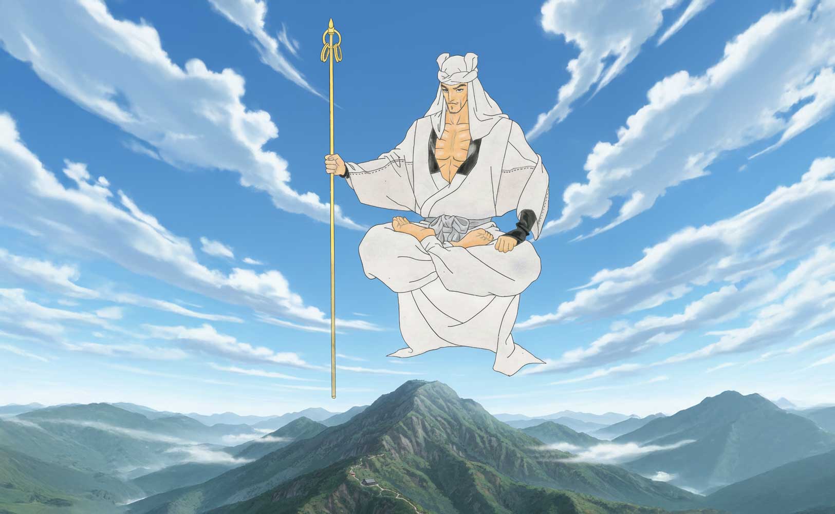 その先に、宮司には、日本の歴史が再び世界へと広がっていく光景がはっきりと見えている。大峰山の遥か上空には役行者がおわしまし、大和の国の様子を見守っておられる。
